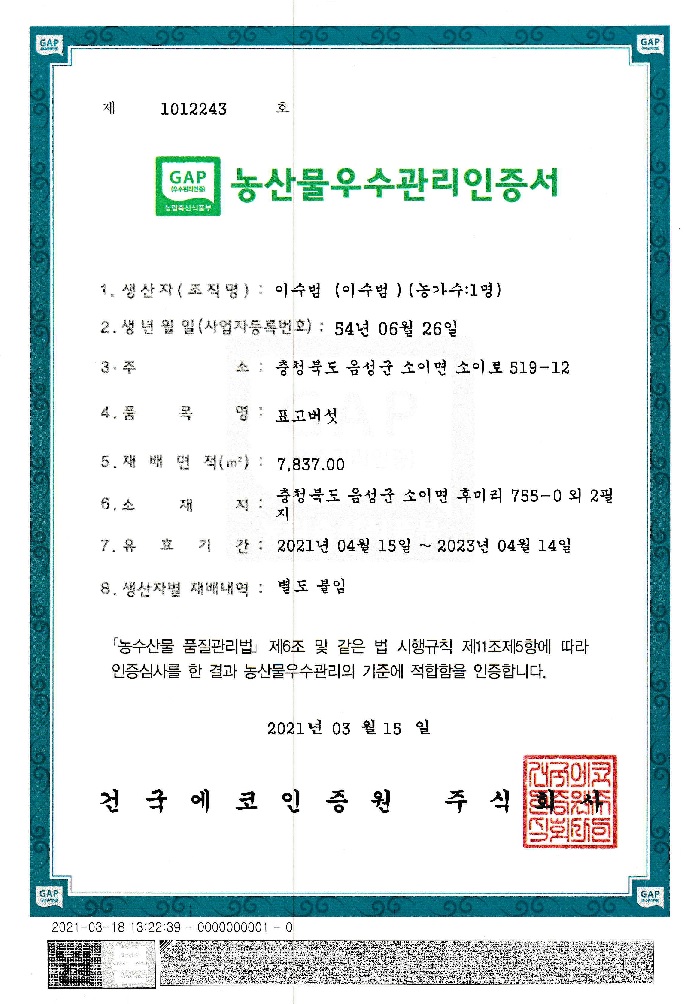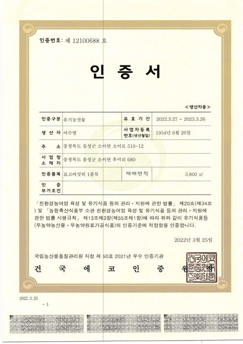 Organic product certificate (individual)