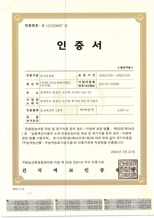 Organic Product Certificate (Corporate)
